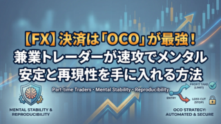 FXで勝てない原因は「決済」にあり!チキン利食いや損切り遅れに悩む兼業トレーダーへ。エントリー後に即OCO注文をセットするだけで、メンタルが劇的に楽になり、手法の再現性が一気に高まります。私が実践する15分足手法を例に、自動決済が最強の味方になる理由を解説します。