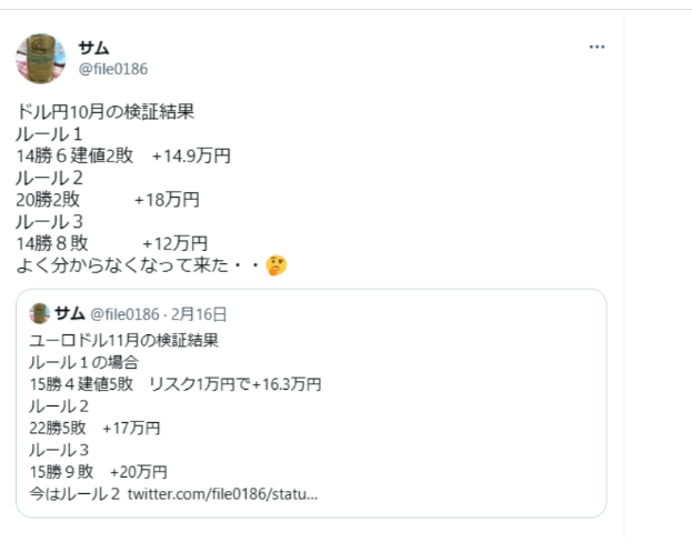- ルール1: 14勝6建値2敗(+14.9万円)