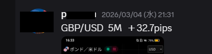 今日、トレードの結果を貼って2連勝で利食いしてました。