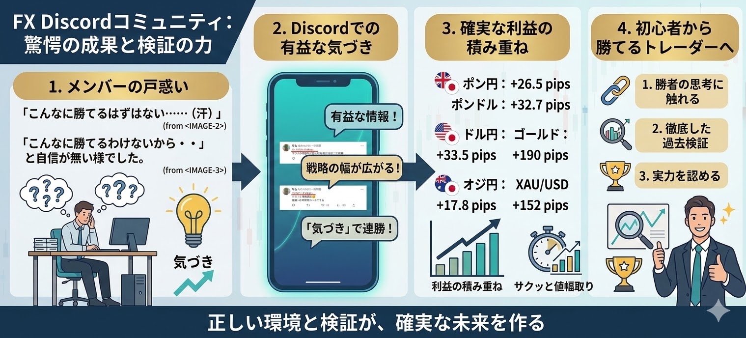 今回は、弊社のDiscordコミュニティで実際に起きている「勝てるようになってしまった」メンバーの生の声と、その裏側にある検証の重要性についてお伝えします。
