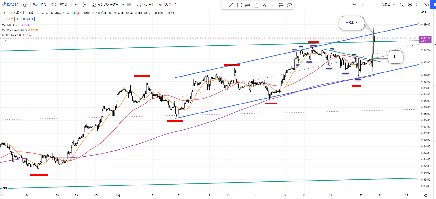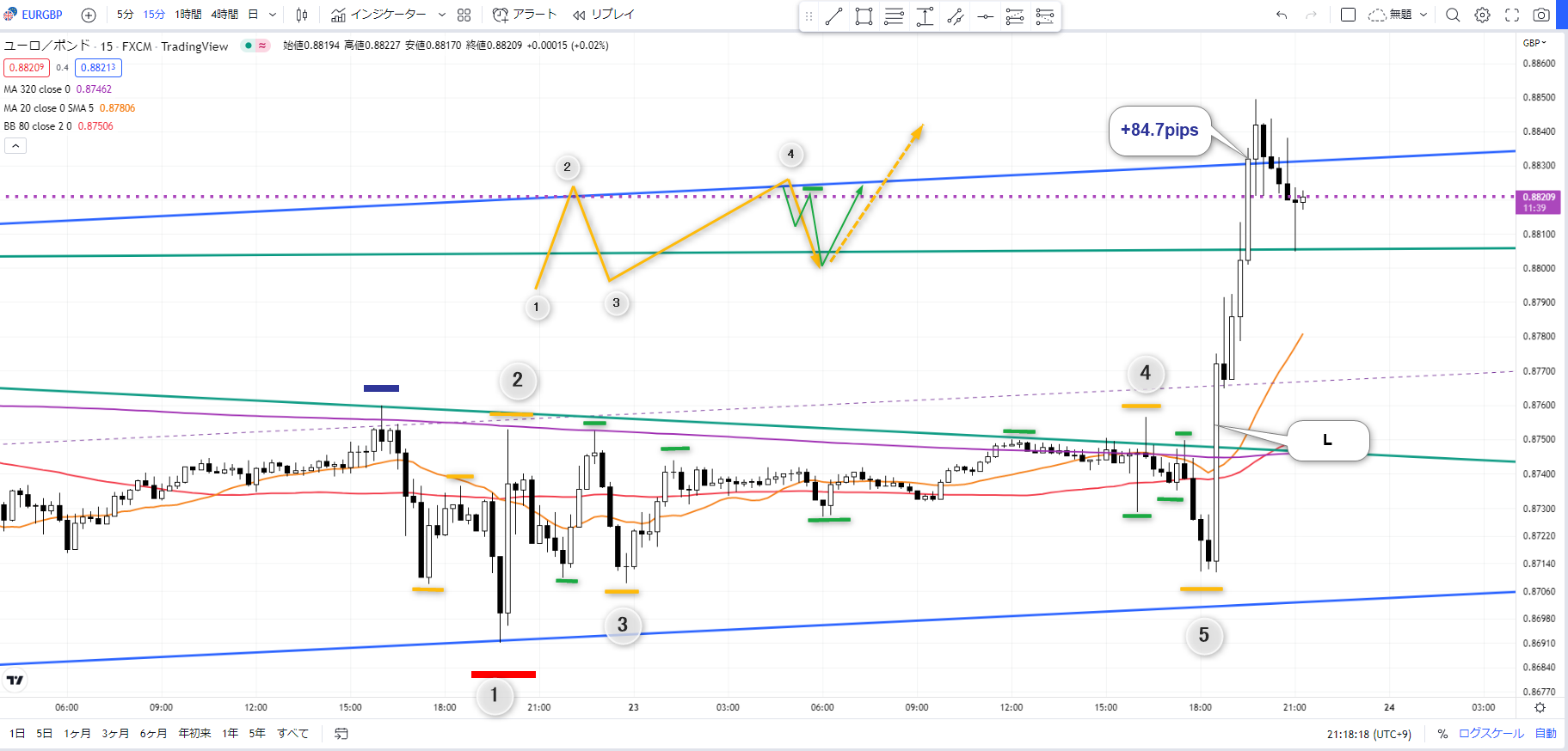 【ユーロポンド】+84.7pips:チャネルと3波の最強コンボ