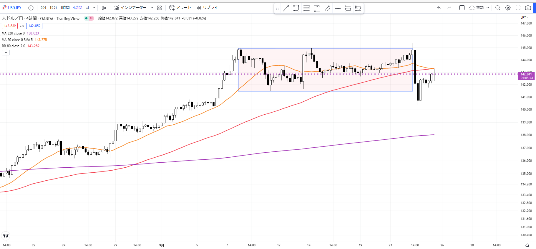 1. 【大波】4時間足:レンジ内でのパワー蓄積
