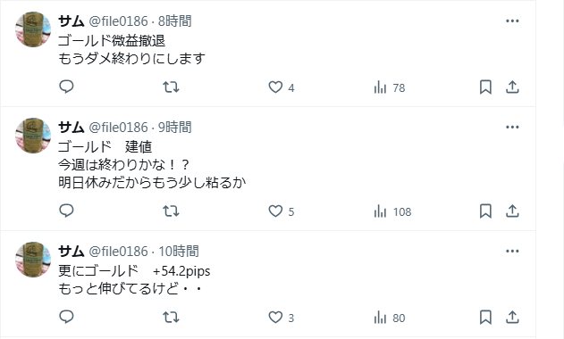 ゴールドの履歴見ると昨日は5勝1敗2微益