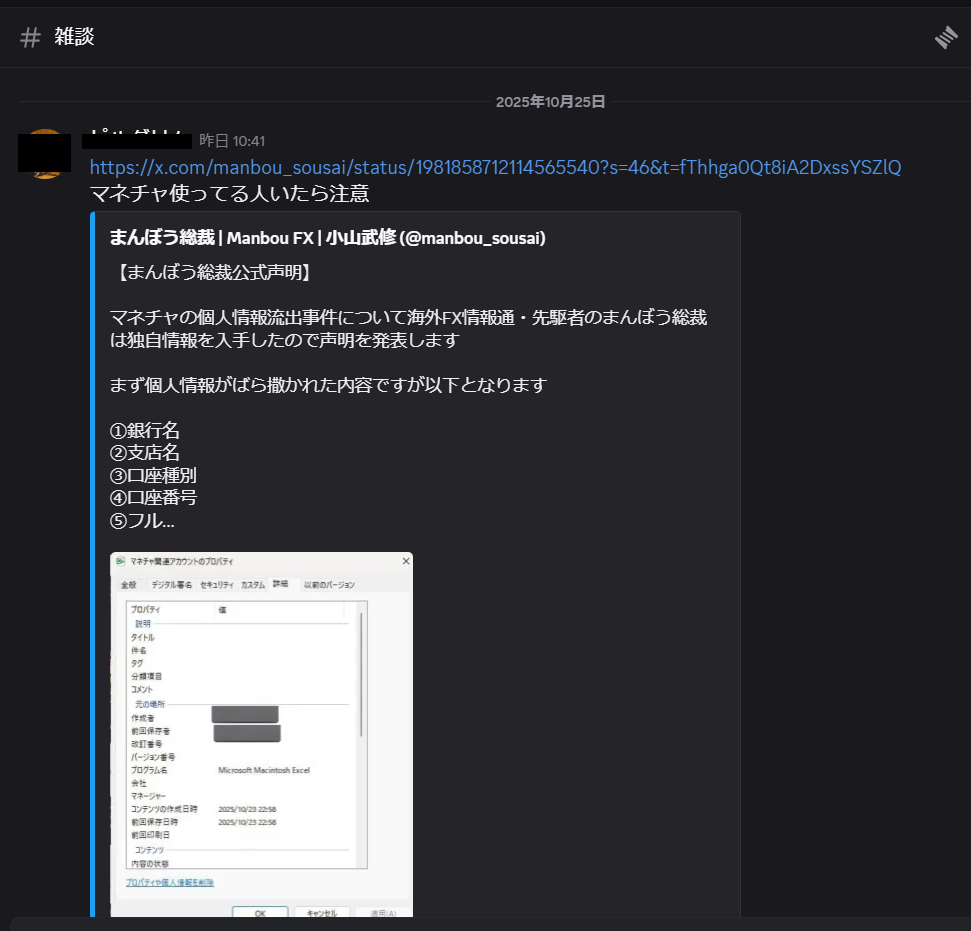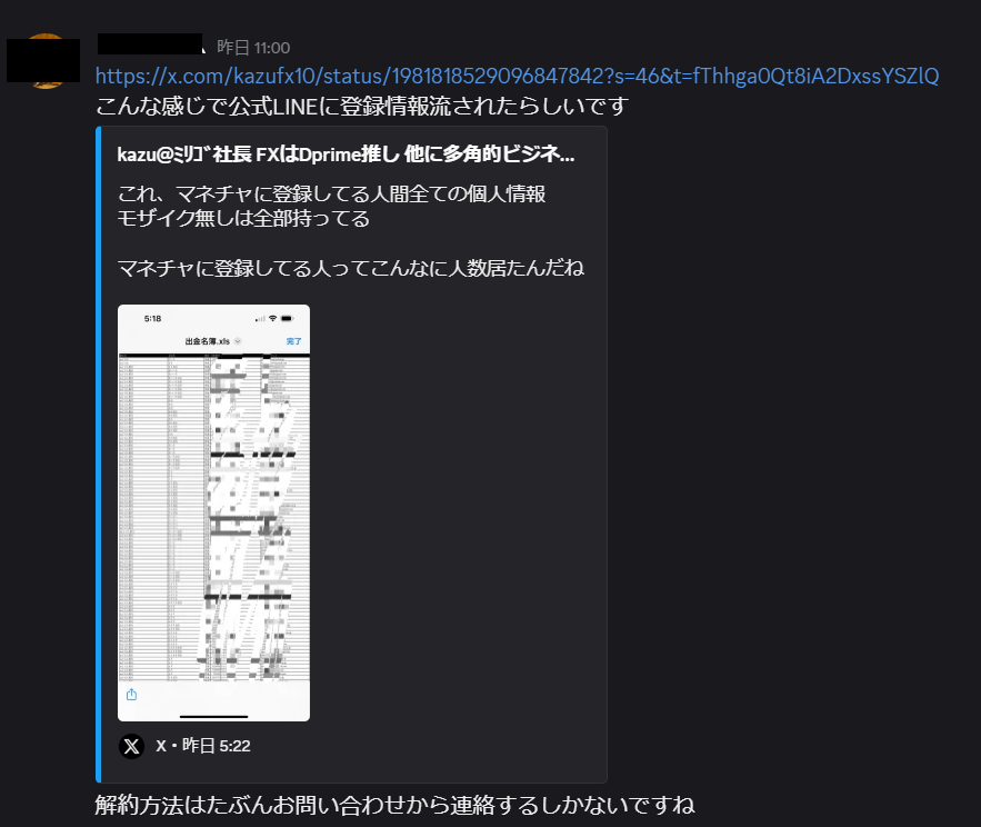 マネチャに登録してる人の個人情報が公式LINEで流されたらしいです