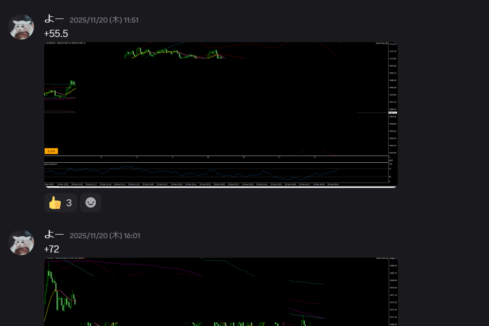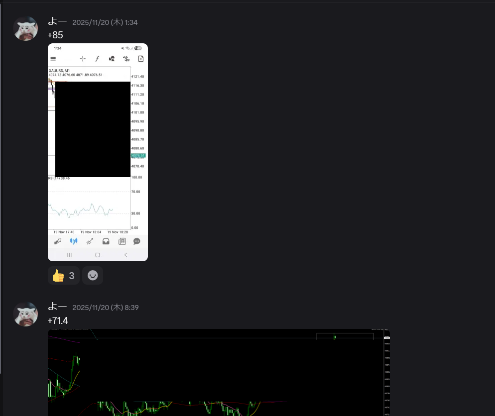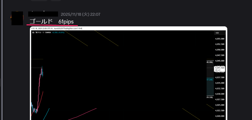 メンバーさんがゴールド1分で値幅取りの報告
