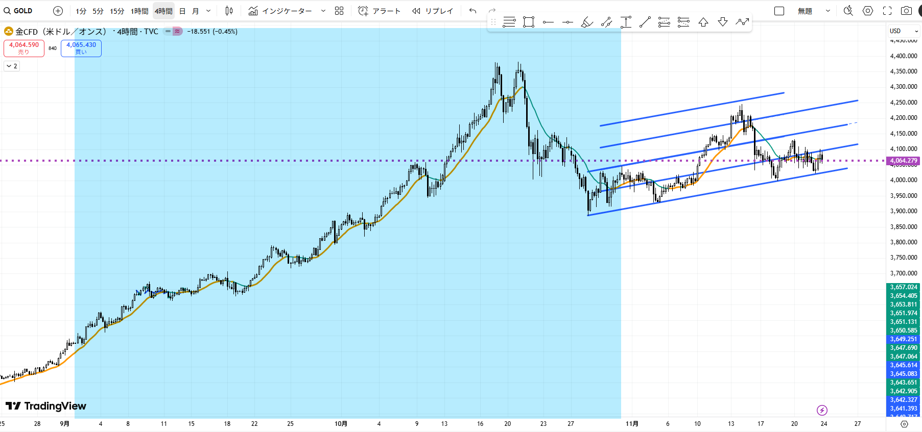高値を付けるまでの水色の期間です