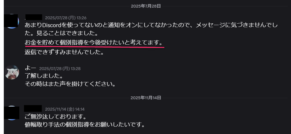 みんなの勝ってる様子を見てお金貯めて個別受けたい!と・・