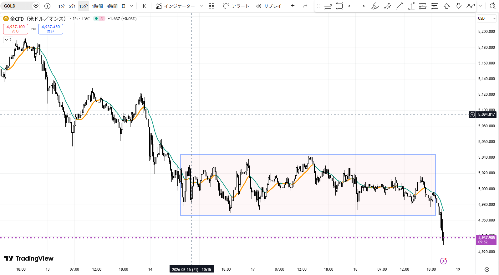 ゴールド(GOLD)15分足