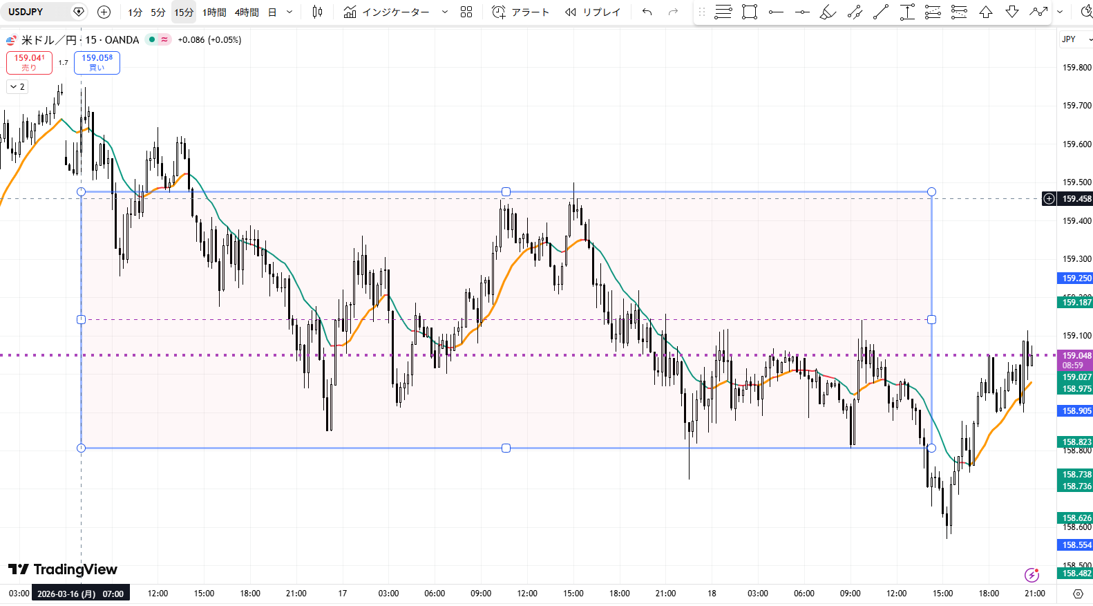 ドル円(USD/JPY)15分足