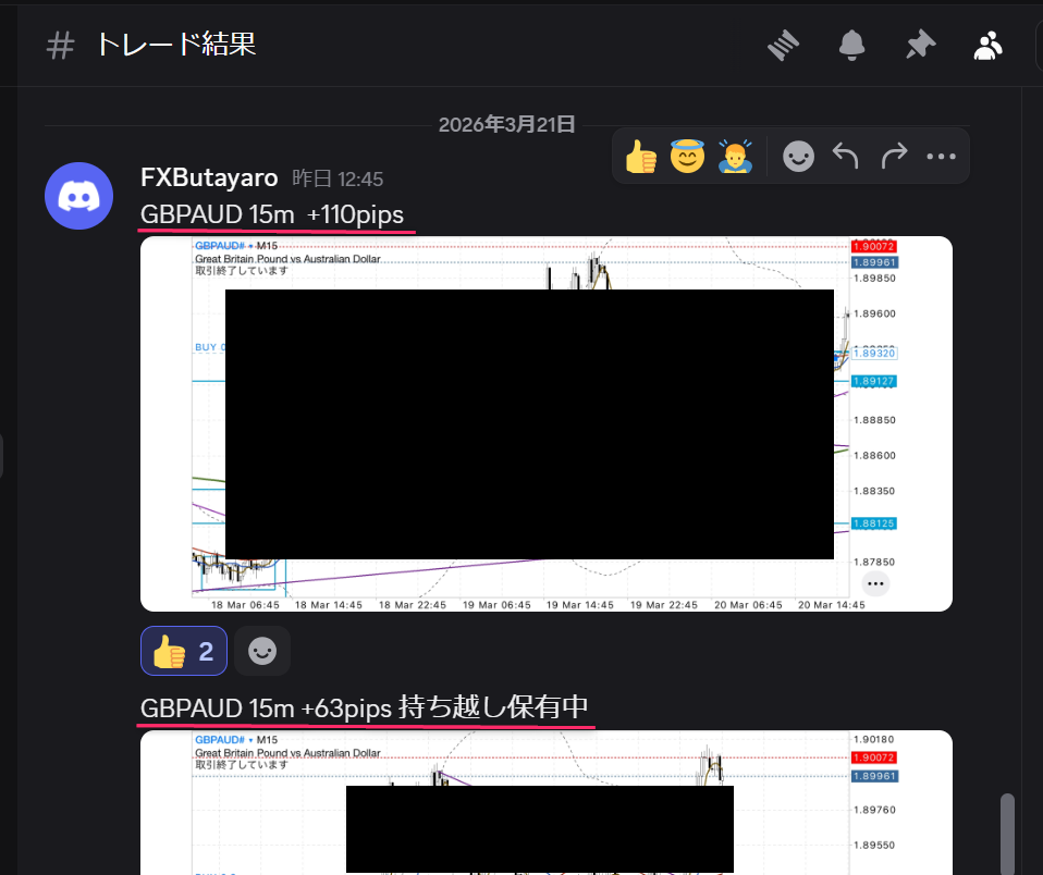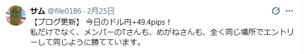 Xでメンバー3人が同じ所を取ったトレード報告をみて