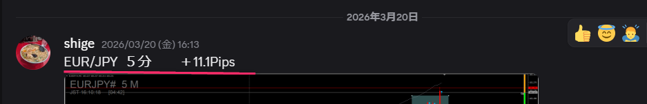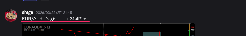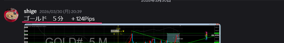 - ゴールド (5分足):しっかり伸ばして+124pips