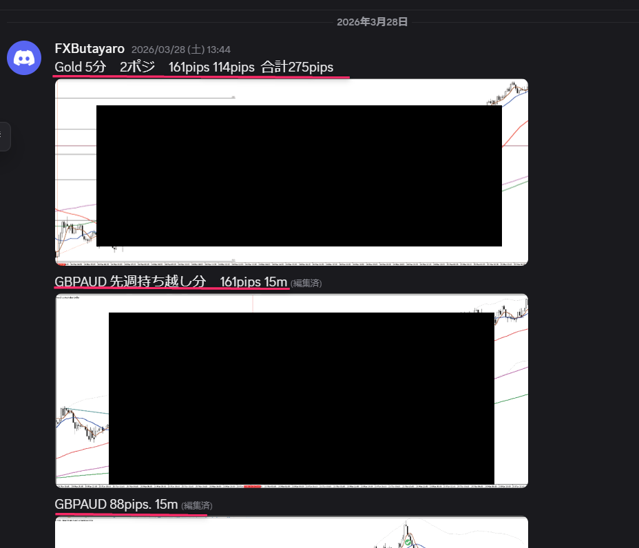 ① ゴールドで275pips・GBPAUDで161pipsの特大利益