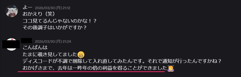 今日は、現在進行形で成長している直近の生徒さん2名と、驚きの報告をくれた卒業生の様子を、実際のDiscordのやり取りとともにご紹介します。
