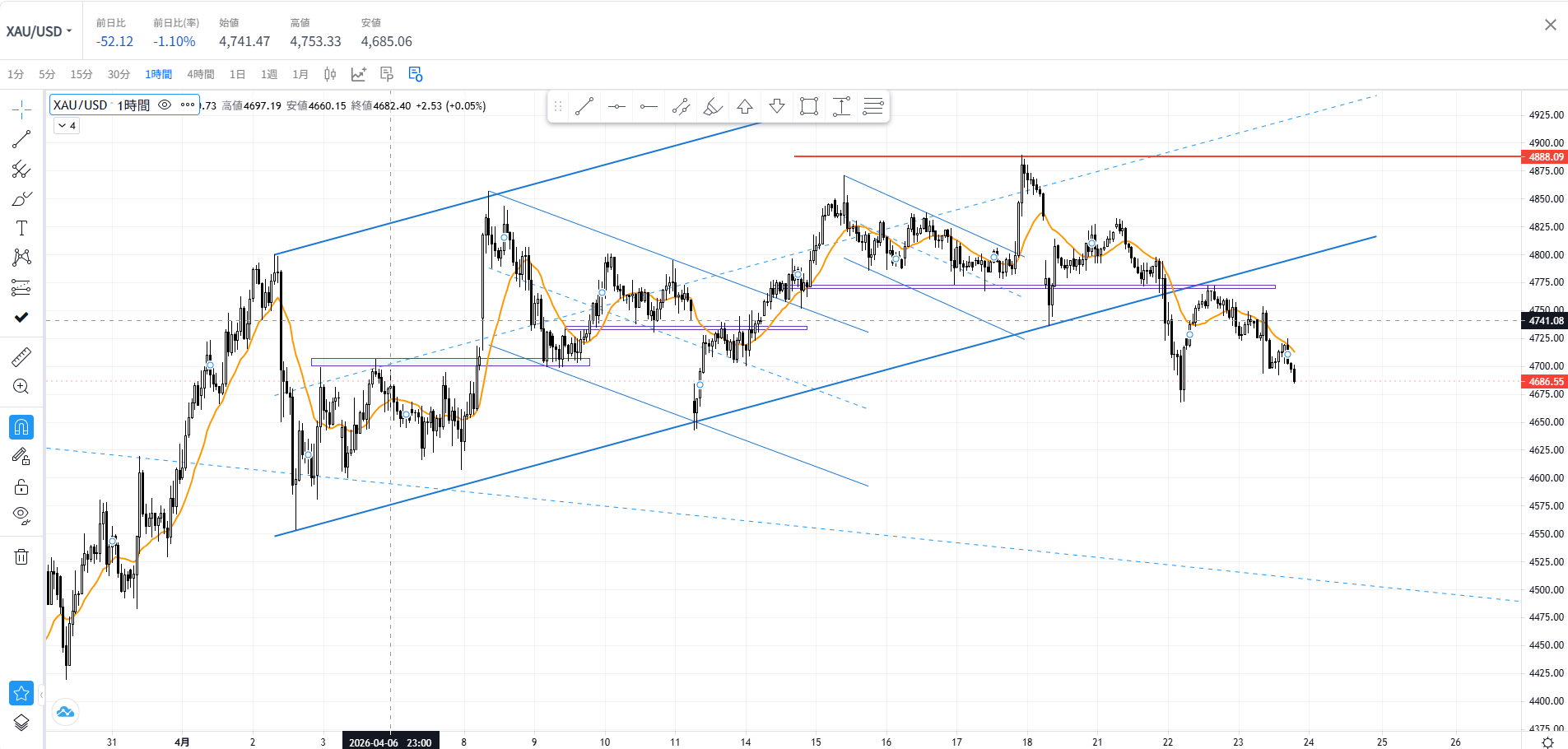 【ゴールド(XAU/USD)環境認識】1時間足のリテストから+176.7pips!下降トレンドの戻り売り攻略法
