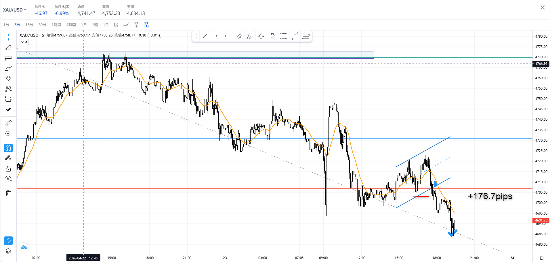 こんにちは!本日はゴールド(XAU/USD)で、環境認識からエントリーまで完璧なシナリオで+176.7pipsを獲得したトレードを解説します。